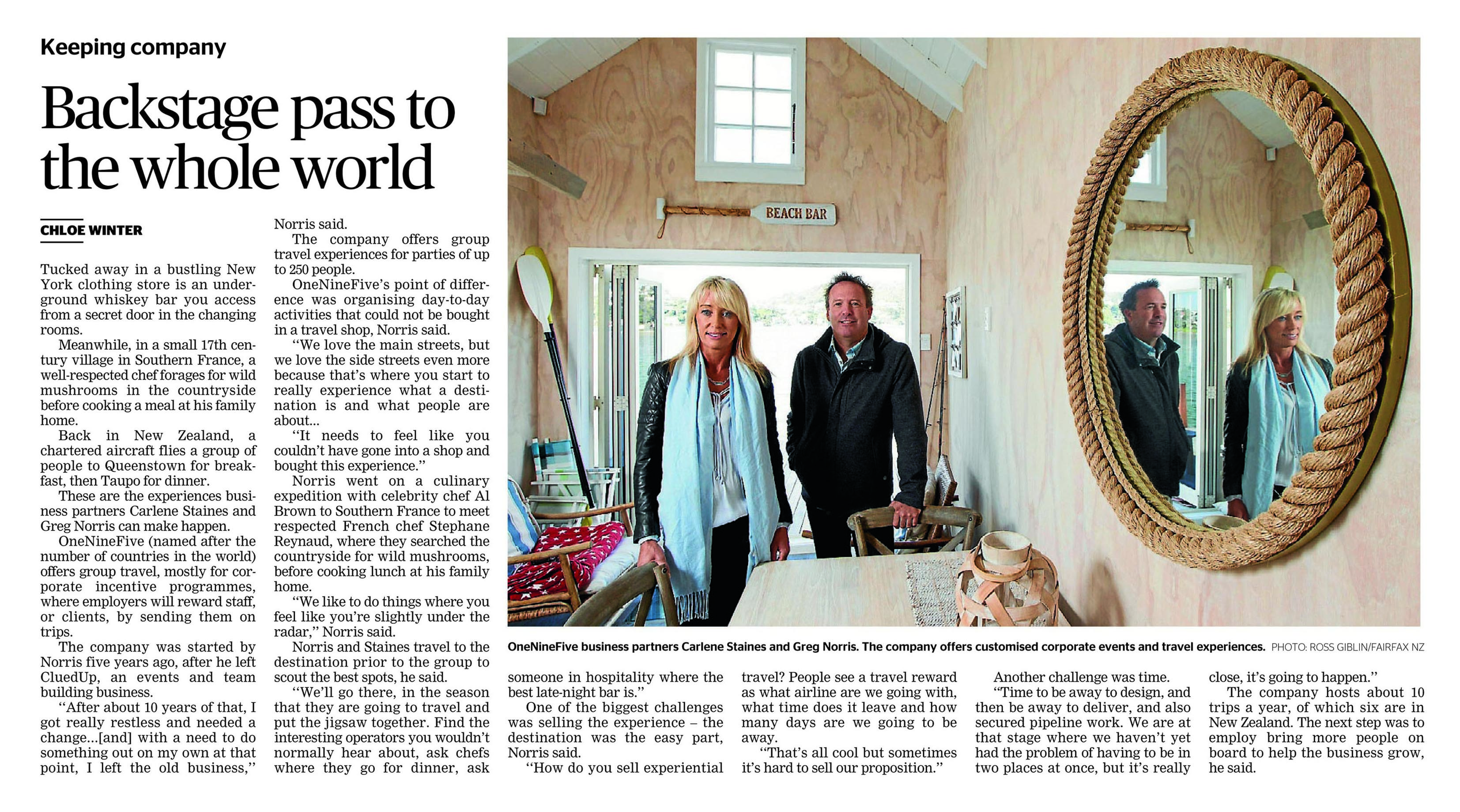 These are the experiences business partners Carlene Staines and Greg Norris can make happen. OneNineFive (named after the number of countries in the world) offers group travel, mostly for corporate incentive programmes, where employers will reward staff, or clients, by sending them on trips.